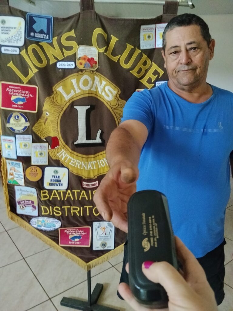 Entrega doação óculos ( armação e lente), para o senhor Marcos Valério Laurente aurente atendendo a solicitação da Secretaria Municipal de Batatais.