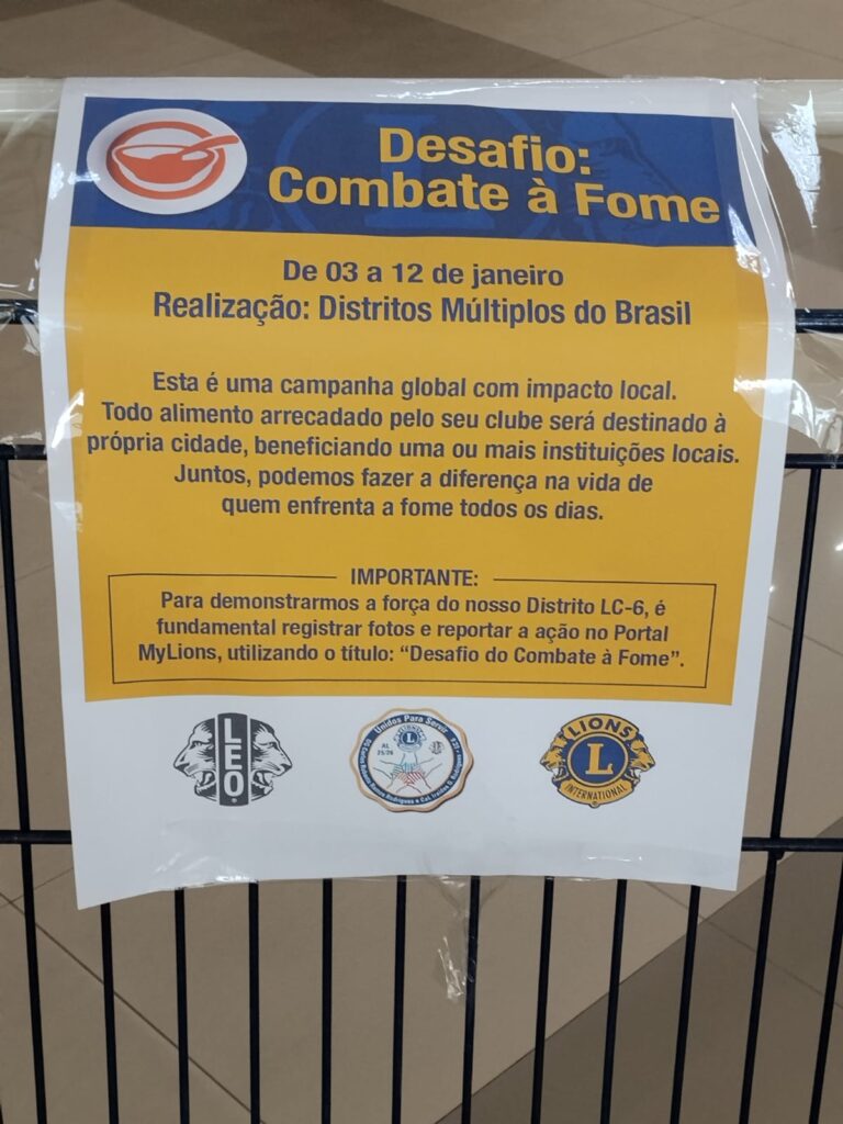 Campanha do DESAFIO COMBATE À FOME pelo Lions Clube de Batatais em parceria com os supermercados da cidade