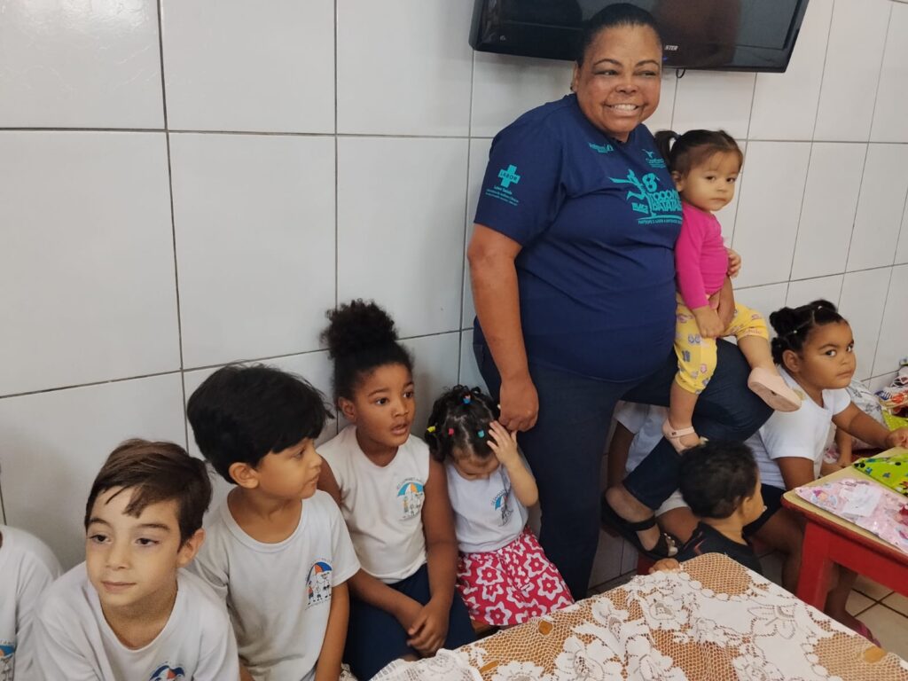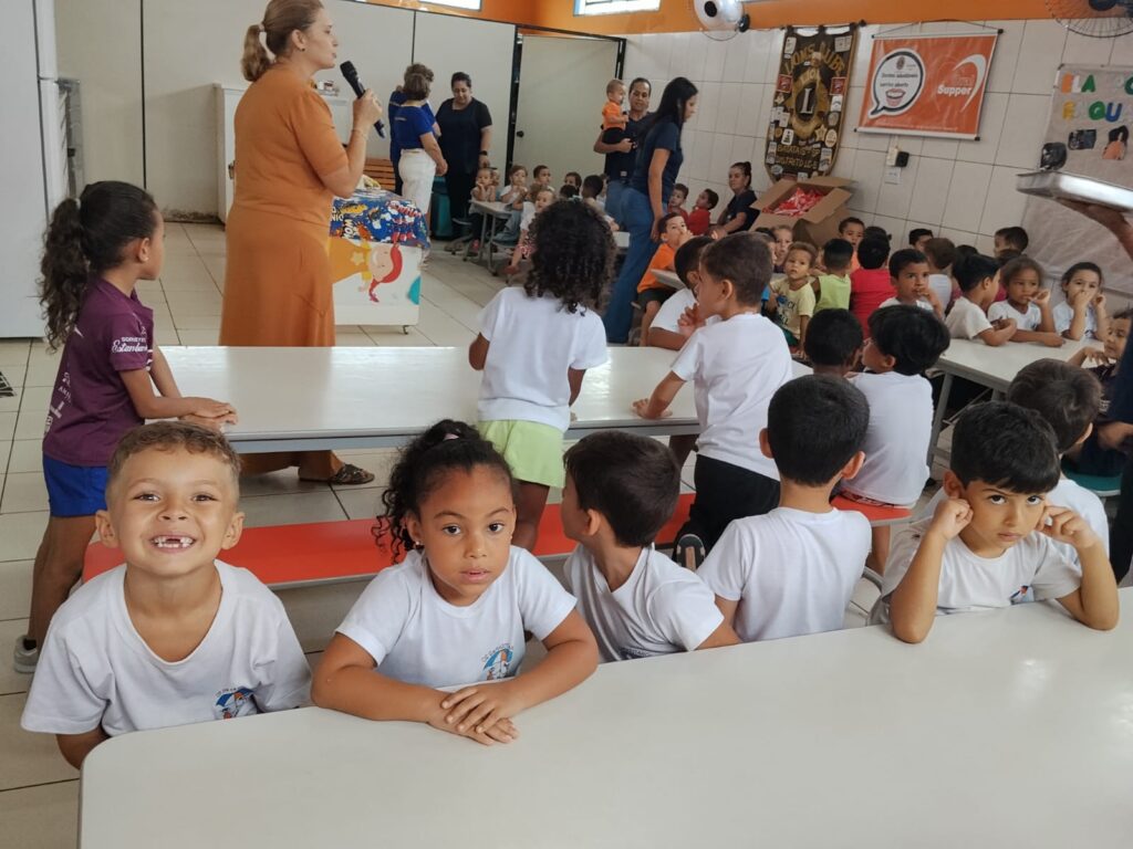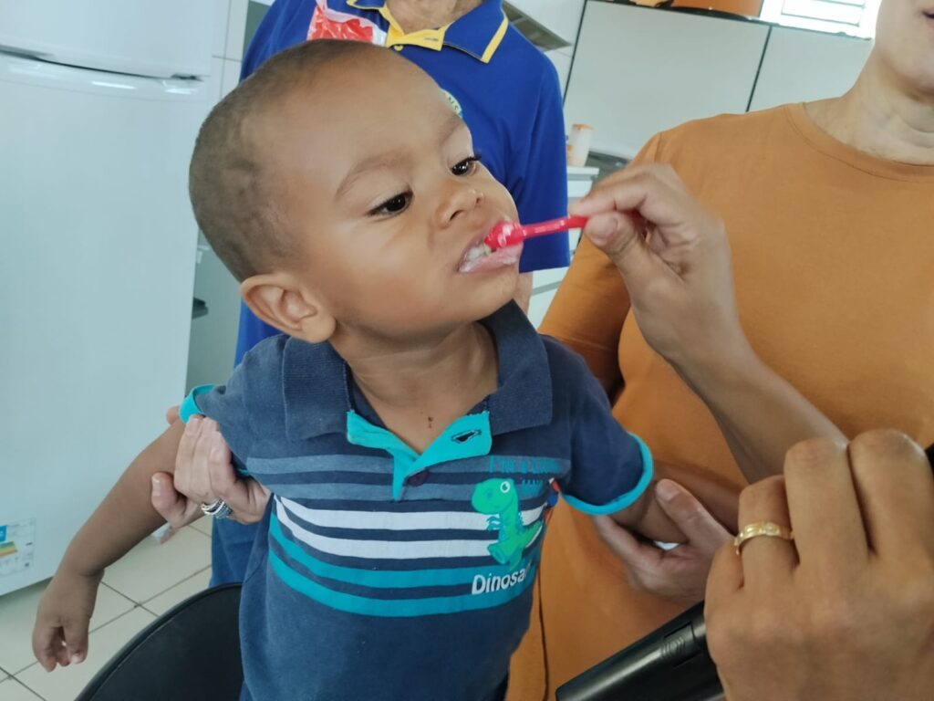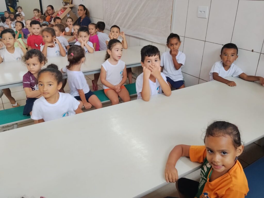 Além de muito aprendizado, as crianças participaram de um momento especial com lanche e receberam kits de higiene bucal da Colgate, incentivando desde cedo os cuidados com a saúde e o bem-estar.