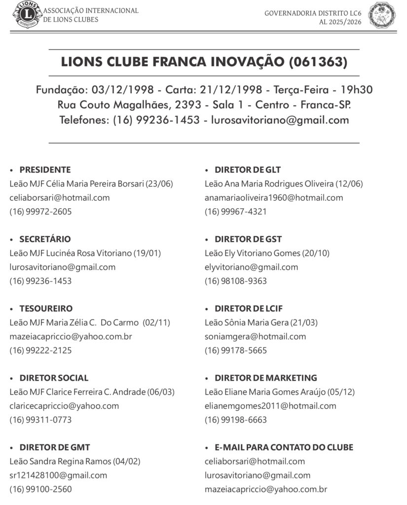 Ação das Leão do Lions Clube de Franca Inovação na montagem e doação de saquinhos surpresas que foram entregues à VOSF( Voluntárias Sociais de Franca) a serem distribuídos no Dia das Crianças.