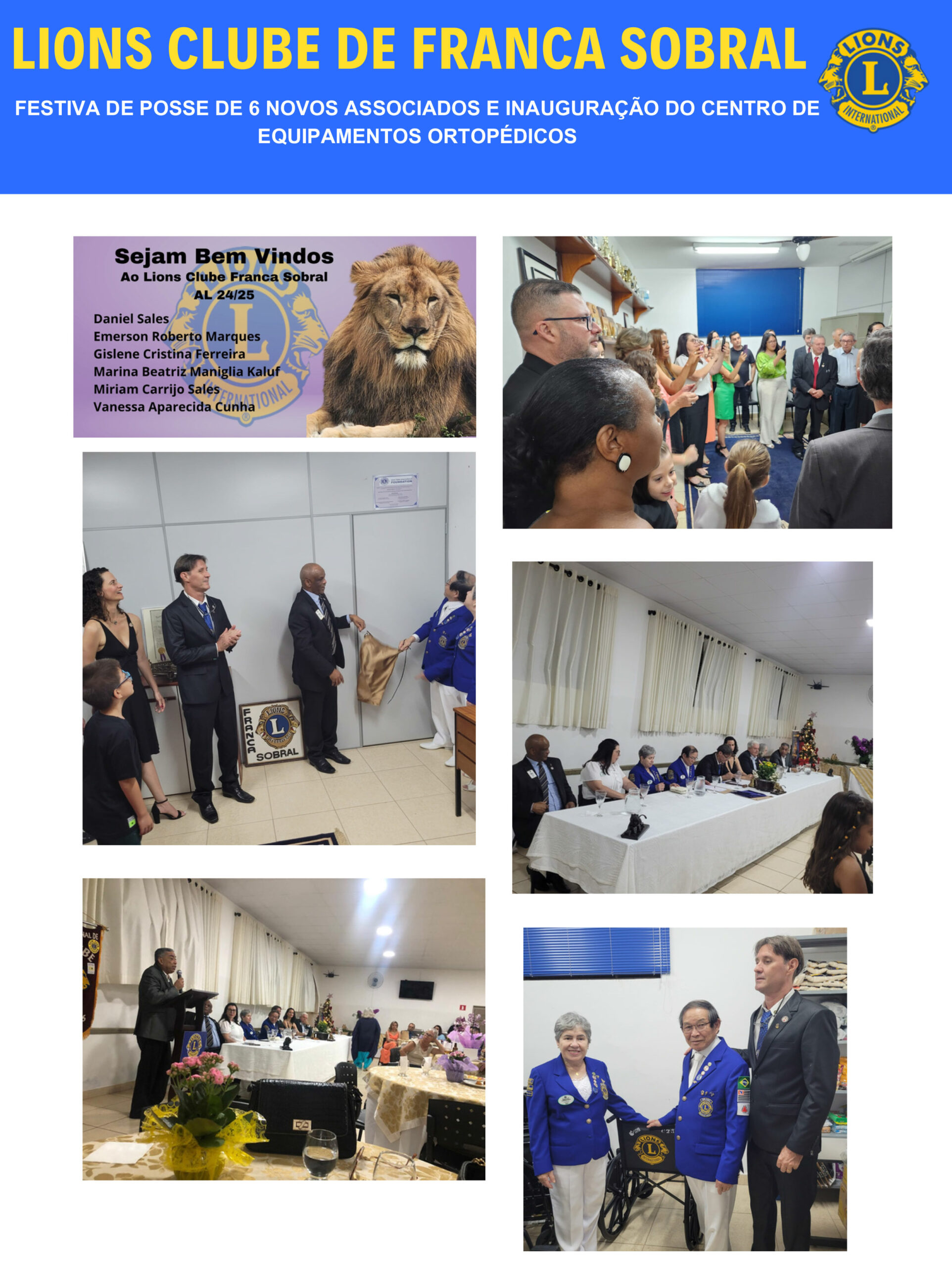 Reunião Festiva de Posse de 6 novos associados e Inauguração do centro de equipamentos ortopédicos Lions Clube de Franca Sobral data 11/12/2024
