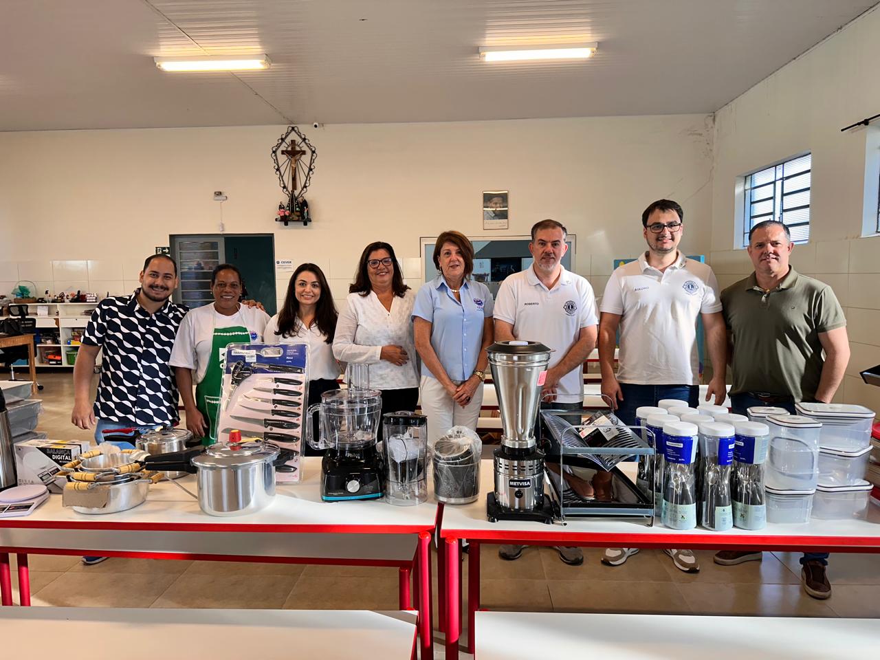 Hoje, 30 de abril, o Lions Clube de Jaboticabal realizou a entrega de materiais de cozinha ao Centro Vicentino Educacional e Recreativo Nossa Senhora Aparecida – CEVER – que atende cerca de 60 crianças em contraturno escolar, proporcionando alimentação e diversas oficinas (teatro, capoeira, informática, futebol e etc).