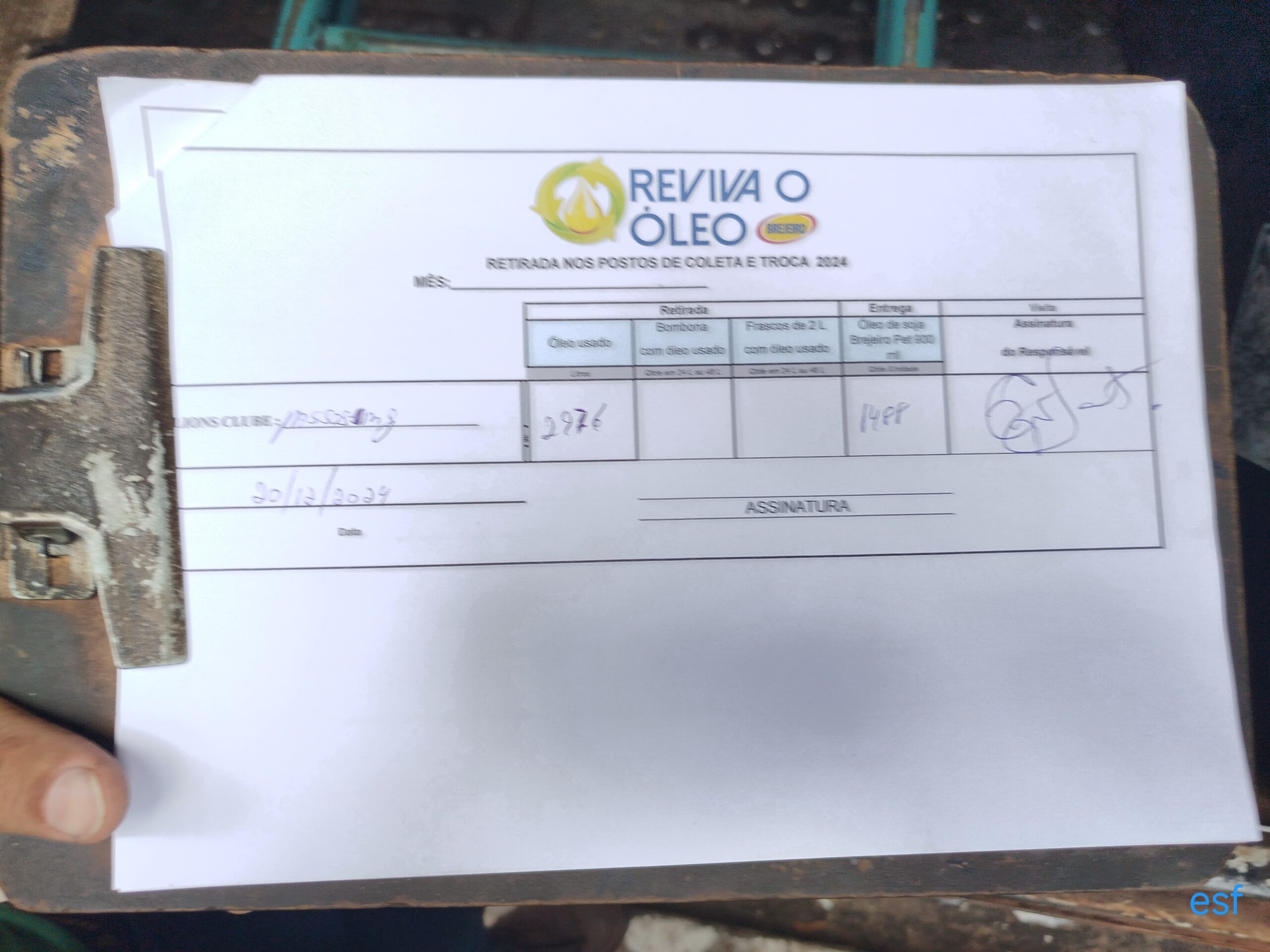 O Lions Clube de Passos, dentro do projeto REVIVA O ÓLEO DO LC 6, fêz a entrega hoje 20/12/24 de 2.976 lts de óleo de fritura usado e recebeu da Brejeiro 1.488 lts de óleo novo que foram repassados às famílias em vulnerábilidade social.