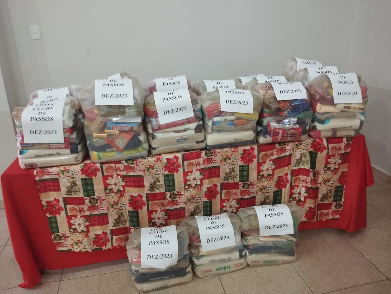 Festiva de final de ano, Lions Clube de Passos, 07/12/23. Foram distribuidas 35 cestas básicas doadas pelos associados para as famílias em vulnerabilidade social.