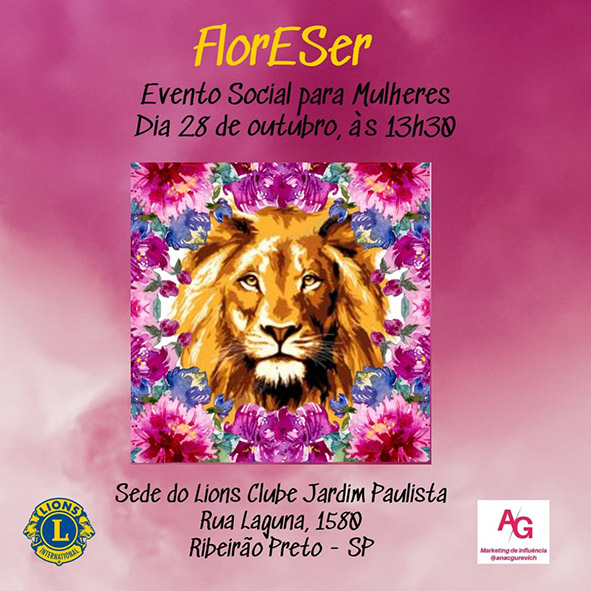 FlorESer, um evento social do Lions Clube – Jardim Paulista, só para mulheres, onde você vai passar uma tarde de conexão humana, divertimento, aprendizado e muito mais. Uma tarde com palestras, um delicioso coffee, surpresas e mimos. Um evento preparado com todo carinho! Esperamos por você!!!