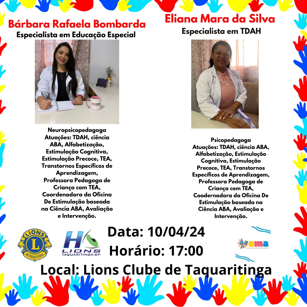 O Lions Clube de Taquaritinga em parceria com o AMA está organizando uma formação especialmente para professores e toda rede pública de ensino em Comemoração ao Dia da Conscientização do Autismo.