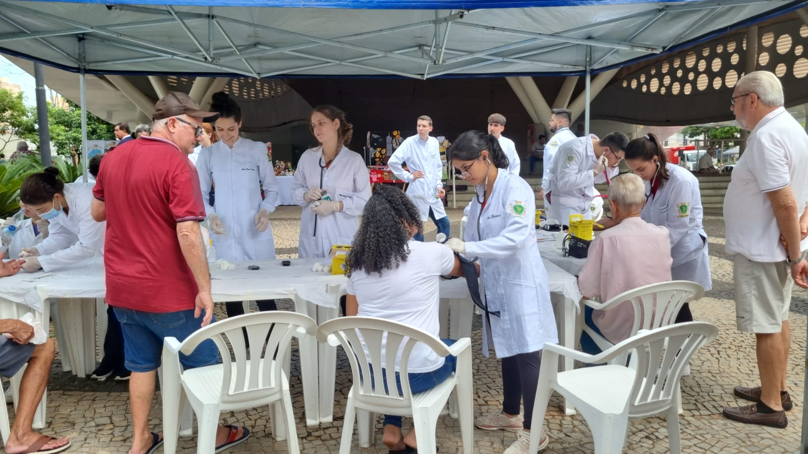 Lions Clube de Votuporanga, no sábado dia 13/04, realizando Campanha da Diabetes e Hipertensão na praça. Em parceria com LEO Clube e UNIFEV.