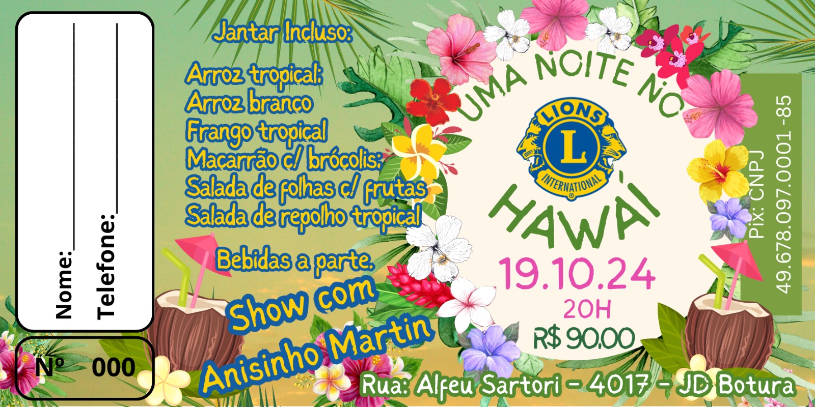 Baile do Havaí no LIONS Clube de Votuporanga … Vamos lá pessoal vamos animar … reserva o seu convite comigo para que eu possa montar sua mesa … ficaremos felizes com a presença de vcs . SIZANE