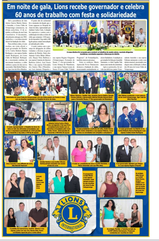 No dia 12/09 Lions Clube Votuporanga recebeu a visita Oficial do casal Governador PMJF Carlos Roberto Ramos Rodrigues MjF Iraídes ! Posse de dois novos associados ! Ilda Stelute Padovani e Higor José da Silva Munhoz ! Doação de 2 mil quilos de macarrão para o hospital do amor de Jales e comemoração de 60 anos da Carta Constitutiva ! E Entrega do Título Melvin Jones pra a Leão Maria Juçara Santos Souza Bazela ! Foi uma Festiva de muitas alegrias e sucesso ! Obrigada Governador Carlos e sua Esposa Iraídes ! E a todos que estiveram lá conosco !!