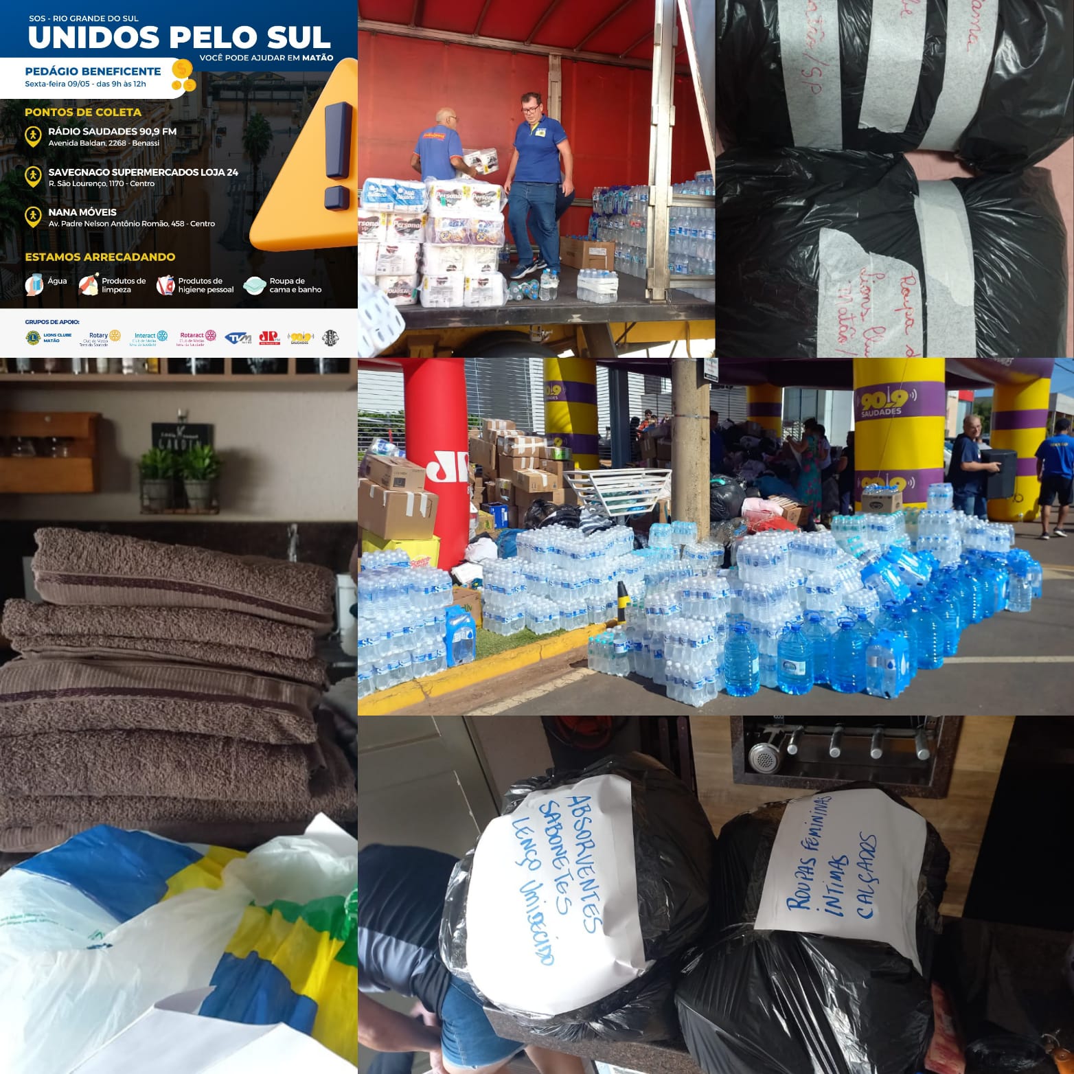 O Lions Clube e o Leo Clube de Matão se uniram em parceria com Rotary de Matão, Interact, Rotary Terra da Saudade, Rotaract e Centro de comunicações TVM, Jovem Pan e Saudade FM na Campanha “Unidos pelo Sul” no período de 10/05 a 16/05/2024.