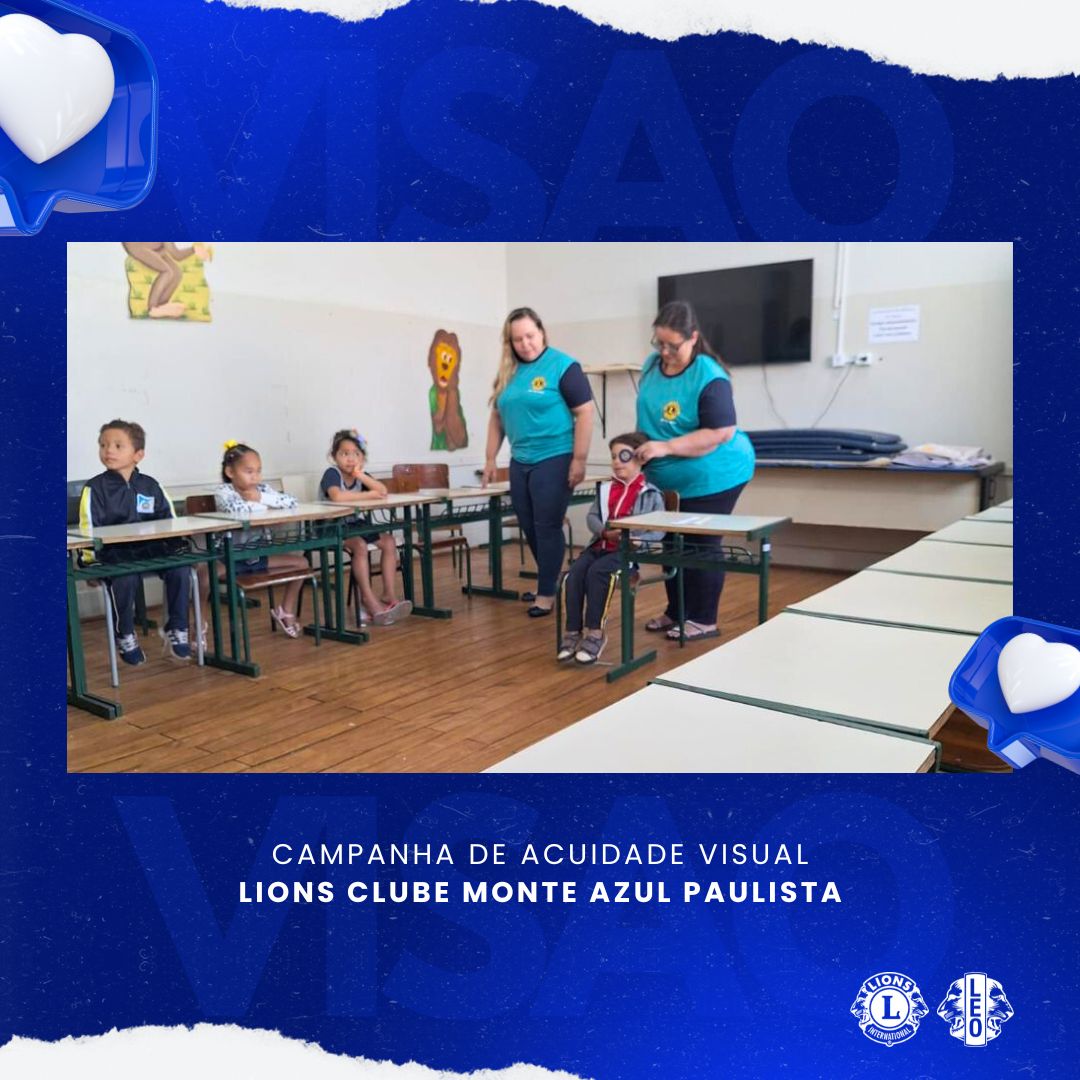 Durante o mês de agosto, o Lions Clube de Monte Azul Paulista, em parceria com o LEO Clube, promoveu a Campanha de Acuidade Visual nas escolas da cidade. Mais de 150 crianças passaram pelos testes, reforçando nosso compromisso com a saúde ocular. Afinal, cuidar da visão é garantir que o amanhã seja sempre claro e brilhante!