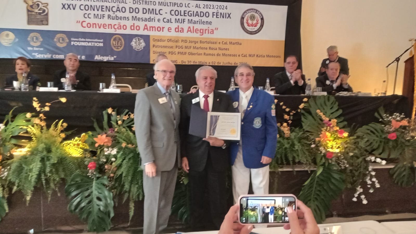 O PCC 2013/2014 IPDG 2009/2010 ,PMJF ANTONIO CARLOS BITTAR, Assessor de LCIF do Distrito LC 6, recebeu a diploma e medalha de reconhecimento Presidencial de Presidente da Lions Internacional Foundation, das mãos do PID Jorge Andres Bortollozzi, na 25a. Convenção do Distrito Múltiplo LC em Caxambu. A entrega aconteceu durante a XXV CONVENÇÃO DO DISTRITO MULTIPLO LC, realizada no dia 01 de junho de 2.024, em CAXAMBU-MG
