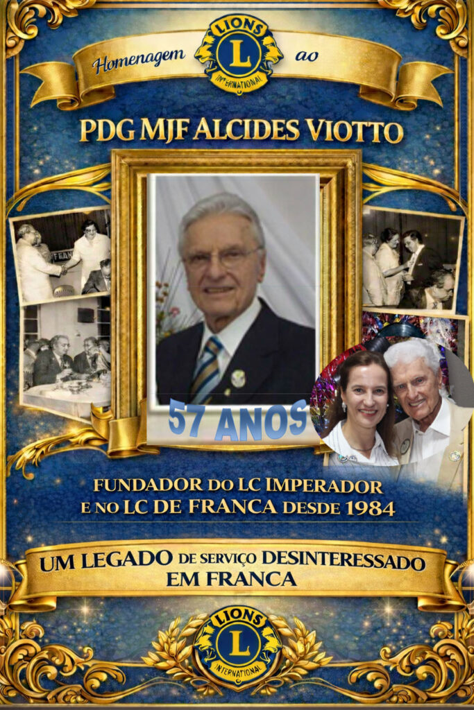 Receba, querido PDG MJF Alcides Viotto, o nosso mais profundo respeito, reconhecimento e gratidão. Que sua trajetória continue iluminando caminhos e inspirando gerações de Leões.