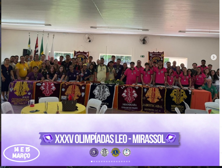 O 35º OLICAMP Léo, realizado na sede do Lions Clube Mirassol, reuniu 11 Léos Clubes do Distrito LC6, promovendo momentos de entusiasmo, serviço e companheirismo. O evento destacou a liderança do Presidente do Distrito Léo, Léo/Leão Lucas, e a organização dos Léos Clubes Mirassol, com ênfase na formação de novos líderes. O encontro renovou a