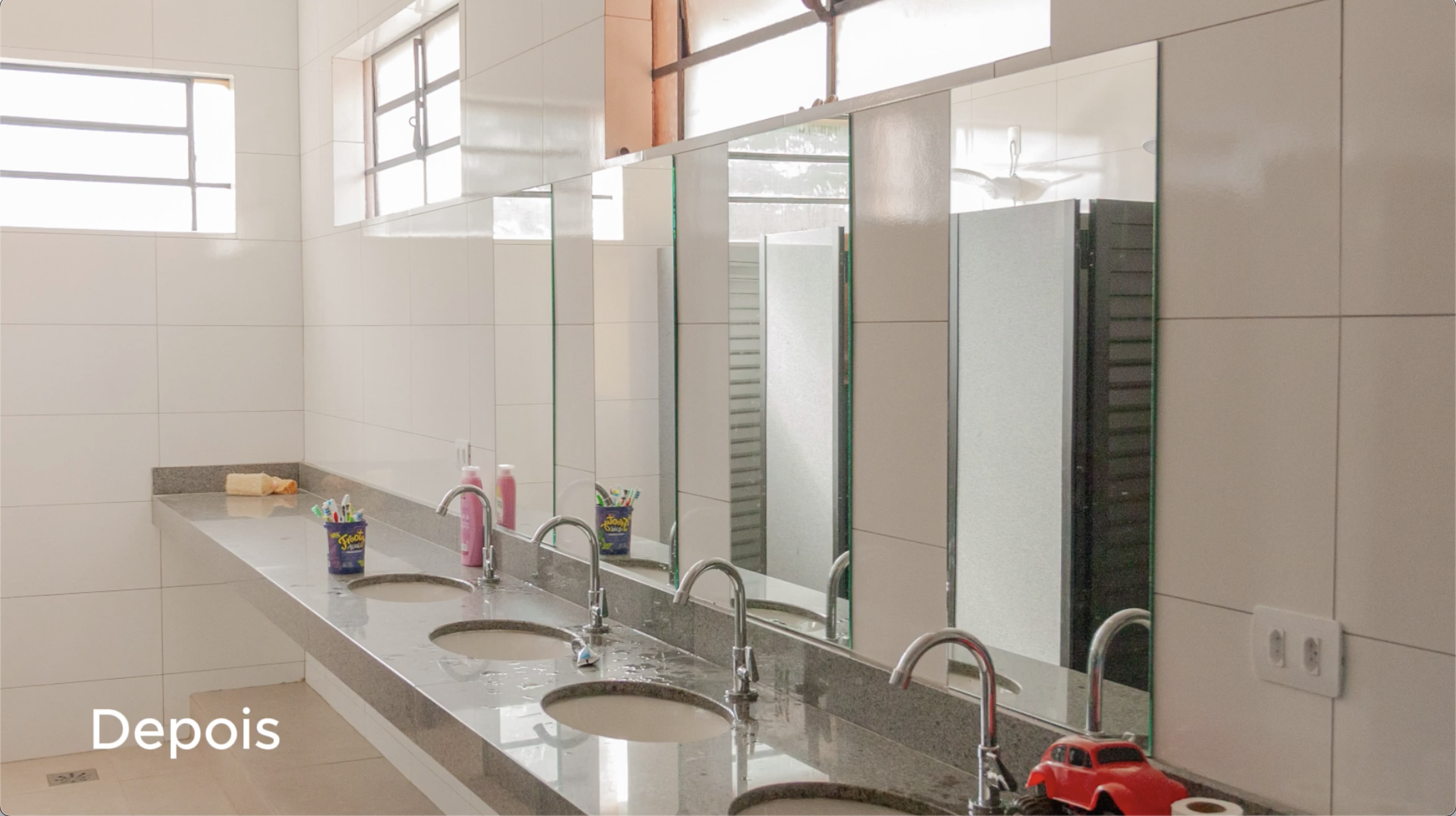 - Reforma geral dos banheiros, com instalação de sanitários acessíveis para pessoas com deficiência (PCD);