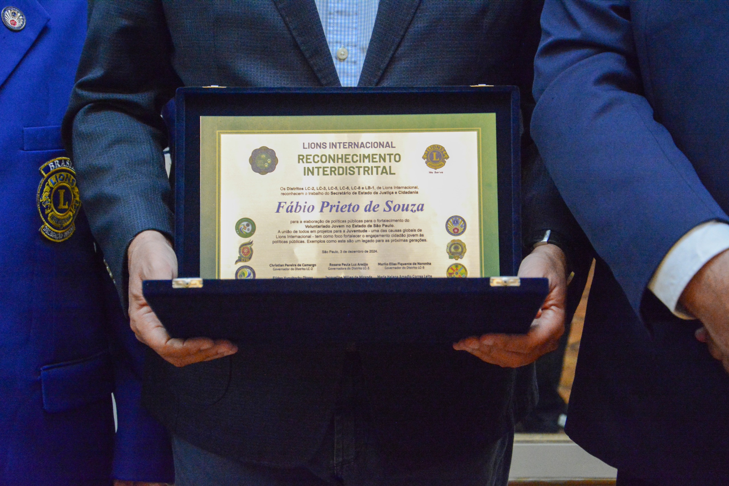 Liderança, desafios e transformação social no centro do encontro entre o secretário da Justiça e Cidadania, Fábio Prieto, Juliano Borges, coordenador da Subsecretaria da Juventude, e os Governadores Distritais do Lions Clubs Internacional. O evento, realizado na terça-feira (18/02), no Salão Nobre da Secretaria da Justiça e Cidadania (SJC), teve como objetivo fortalecer o protagonismo juvenil e ampliar o engajamento dos jovens em ações voluntárias. A parceria busca incentivos iniciativas que promovam impacto social e estimulem a formação de novas lideranças comprometidas com a cidadania e a solidariedade.