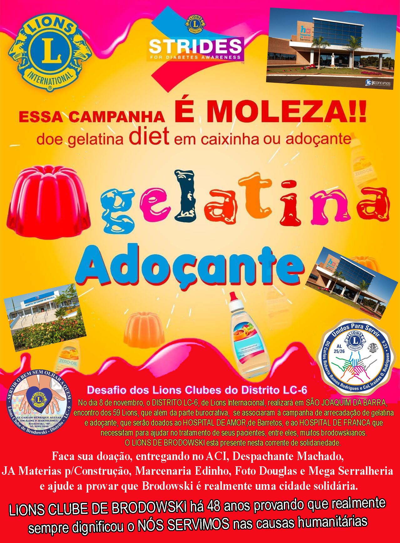 Nosso objetivo é arrecadar 2 gelatinas ou adoçantes dietéticos por membro do clube.