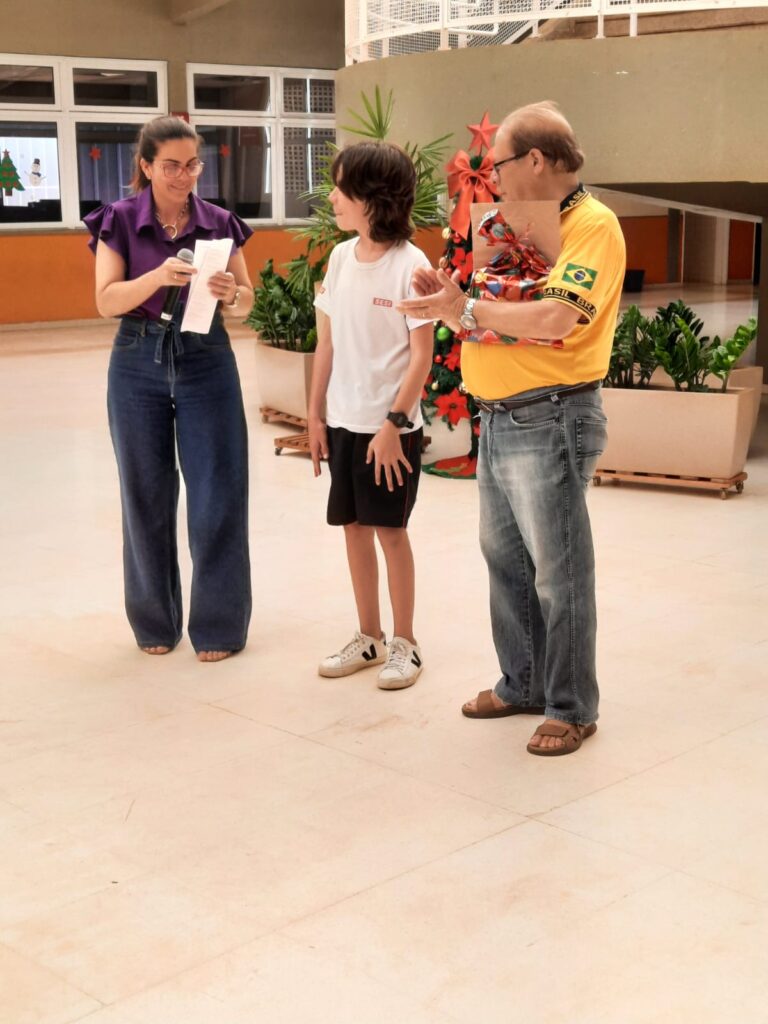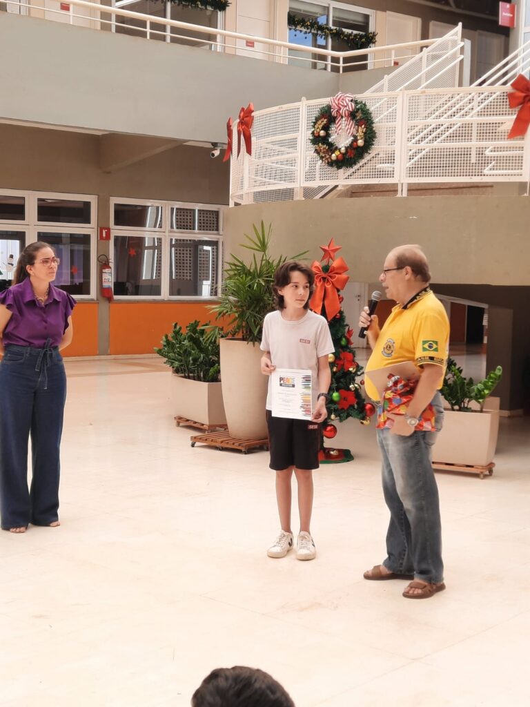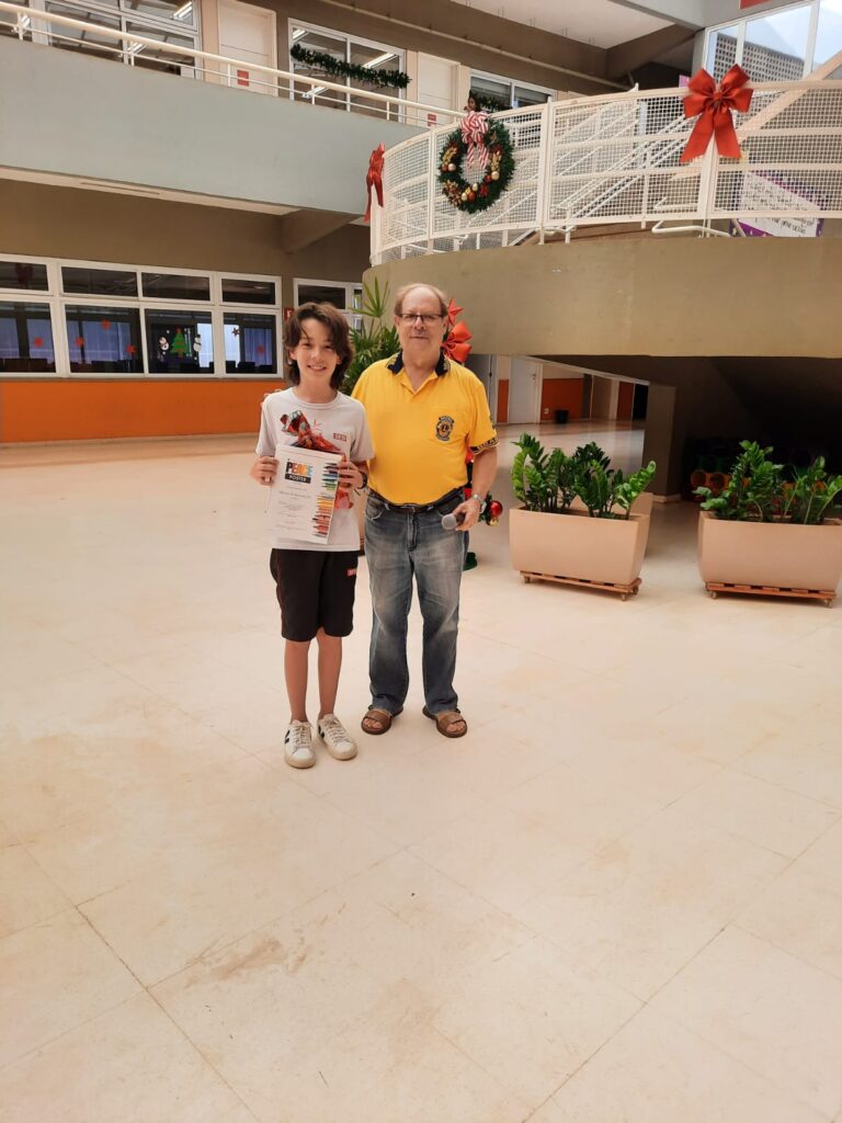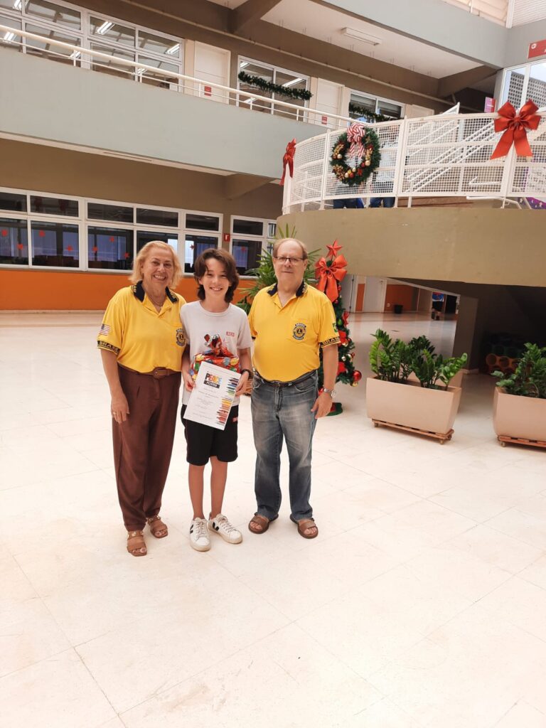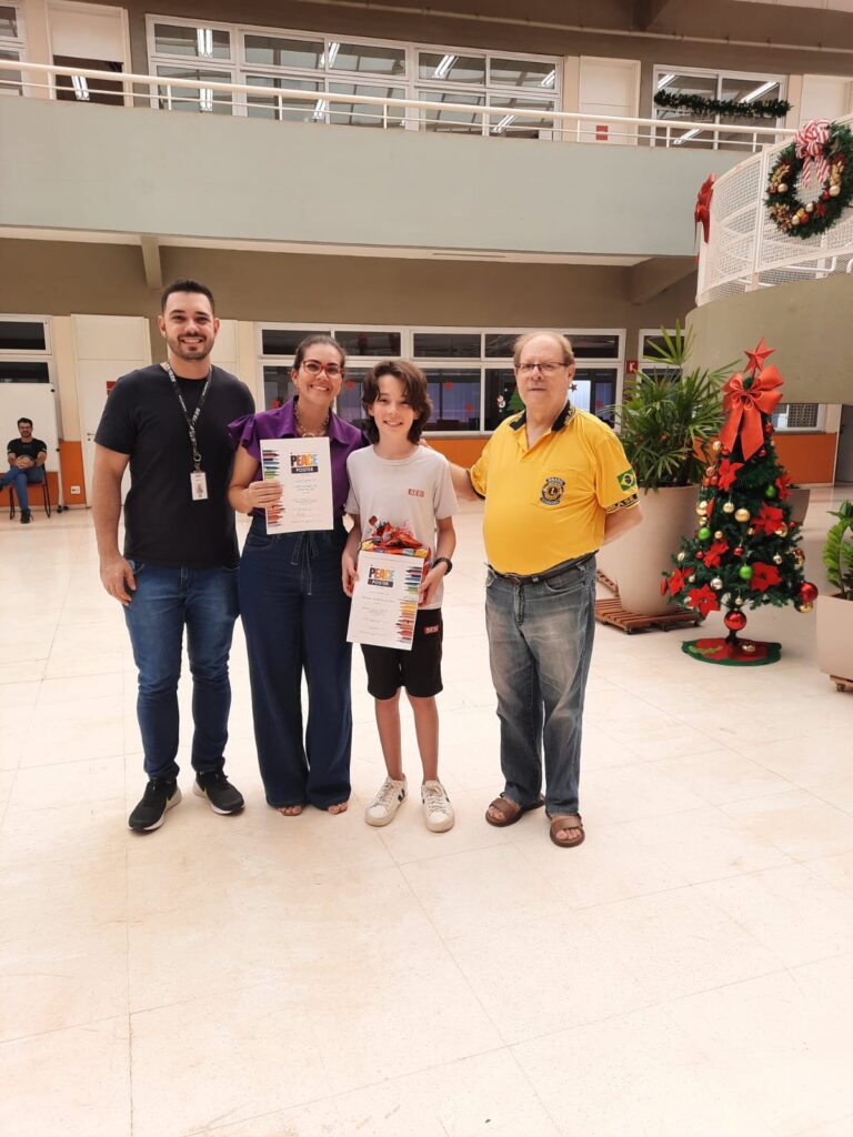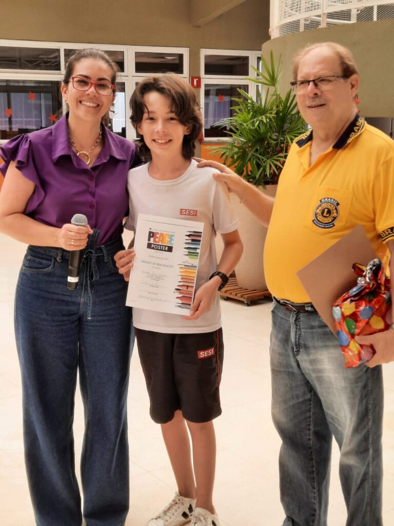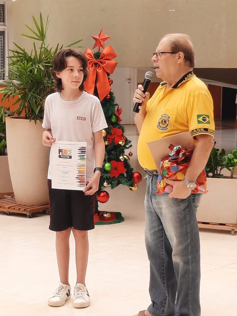 Entrega hoje 01/12/25 de prêmio ao estudante Bernardo Vilela Kanesaki, vencedor do Concurso Cartaz sobre a Paz do Lions ns escola SESI Barreto.