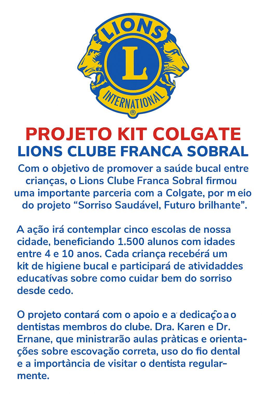 O Projeto Kit Colgate / Lions Sobral – Sorriso Saudável, Futuro Brilhante foi concluído com grande sucesso.