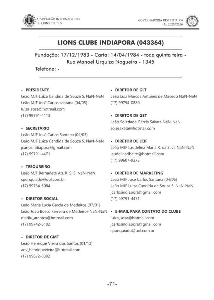Veja a galeria de NOVOS ASSOCIADOS no link : https://www.distritolc6.com.br/index.php/agora-sou-do-lions/5589-indiap9.html
