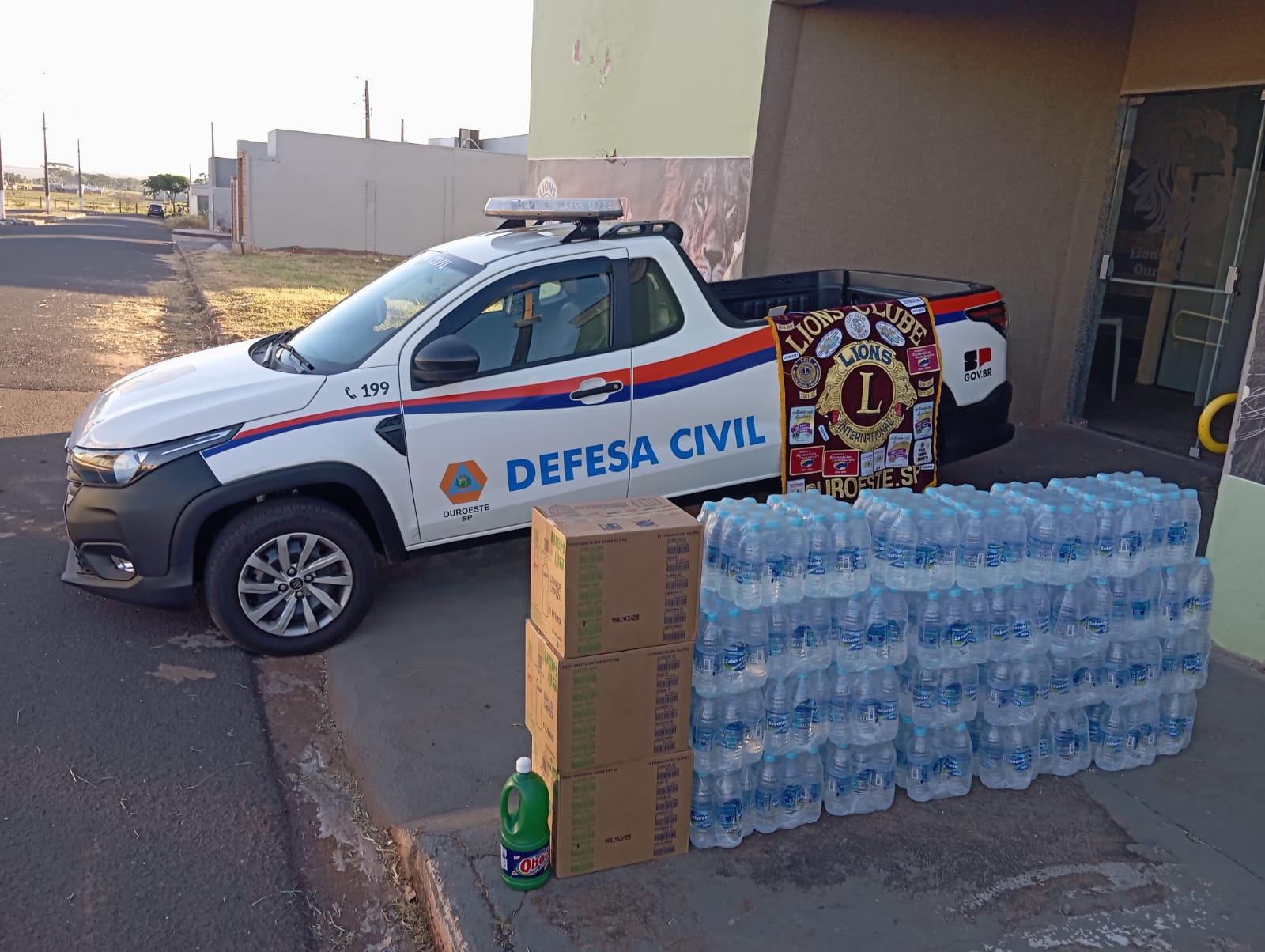 SOS Rio Grande do Sul- Lions Clube de Ouroeste faz doações de água mineral e água sanitária que serão encaminhadas através da Defesa Civil do Município de Ouroeste, juntamente as demais doações que foram arrecadadas no município