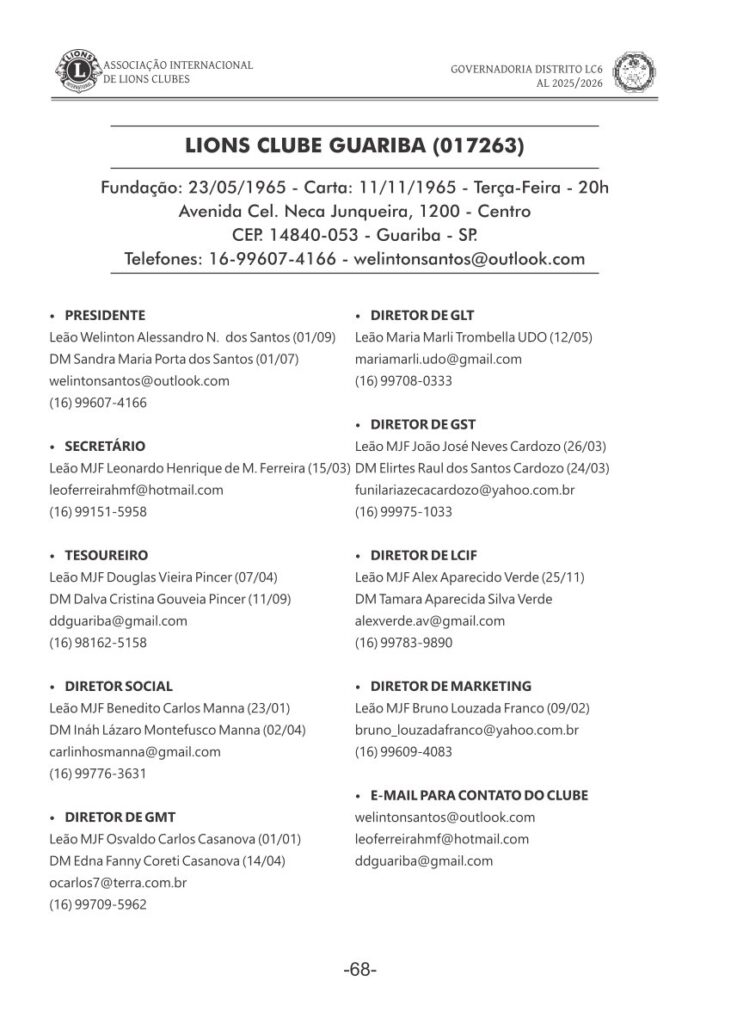 “LIONS CLUBE DE GUARIBA”