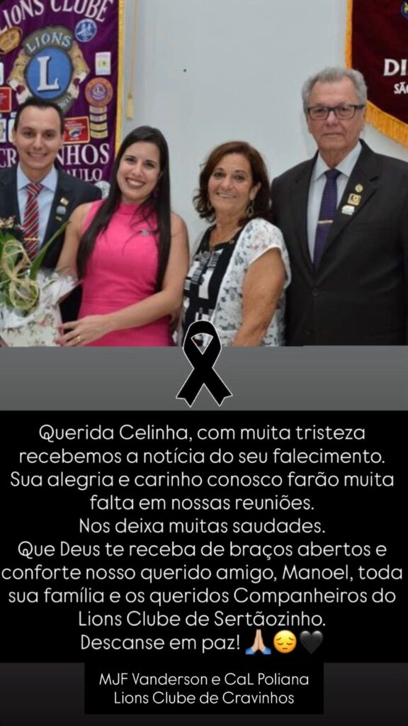 Leões é com imensa tristeza que comunico o falecimento da nossa querida Leão MJ Celinha do Lions Clube Sertãozinho